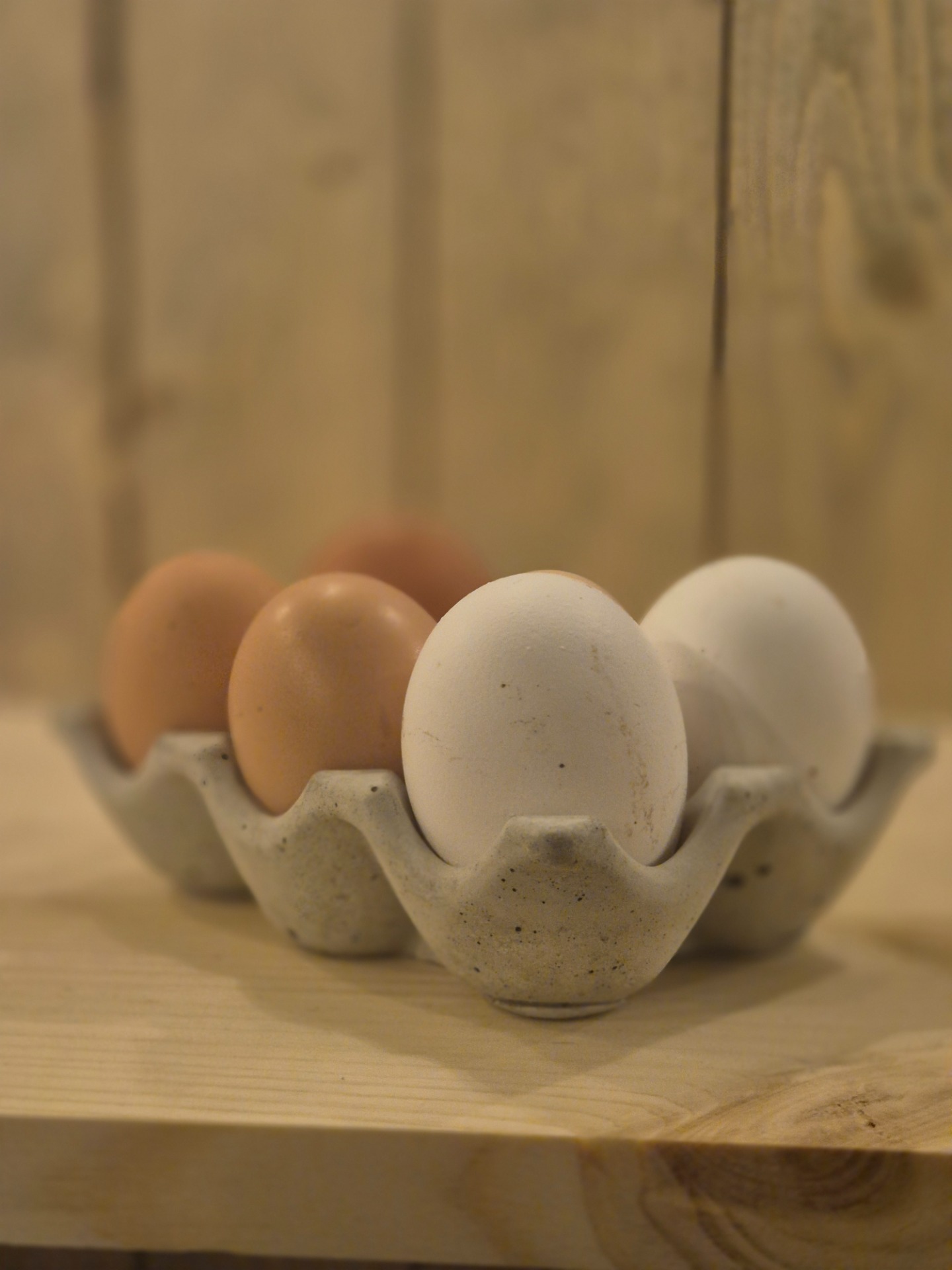 Gjuten i finbetong för att kunna stå både ute och inne.