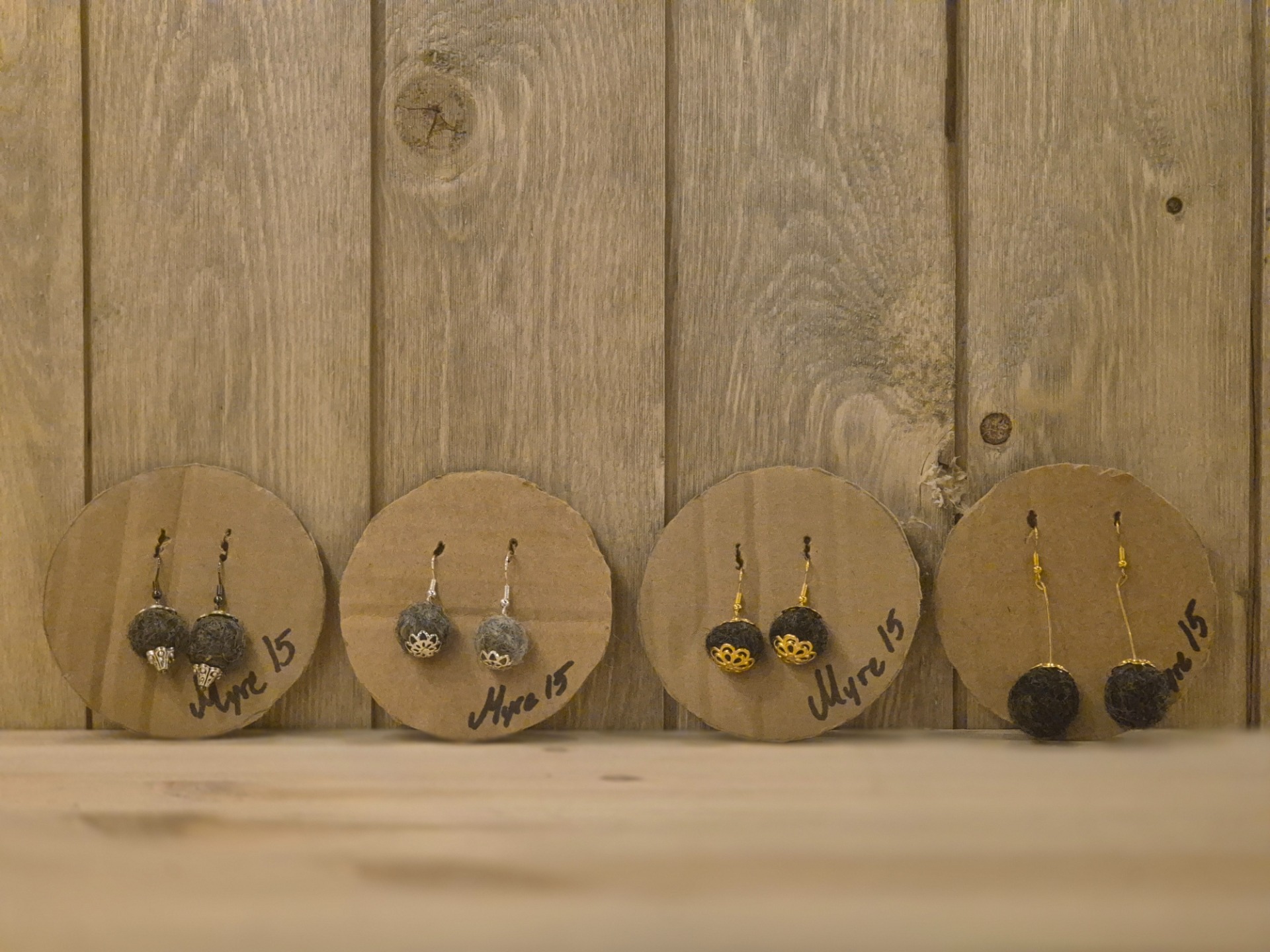 Fina örhängen med guldbeslag. Nickelfria. Kardad ull.
