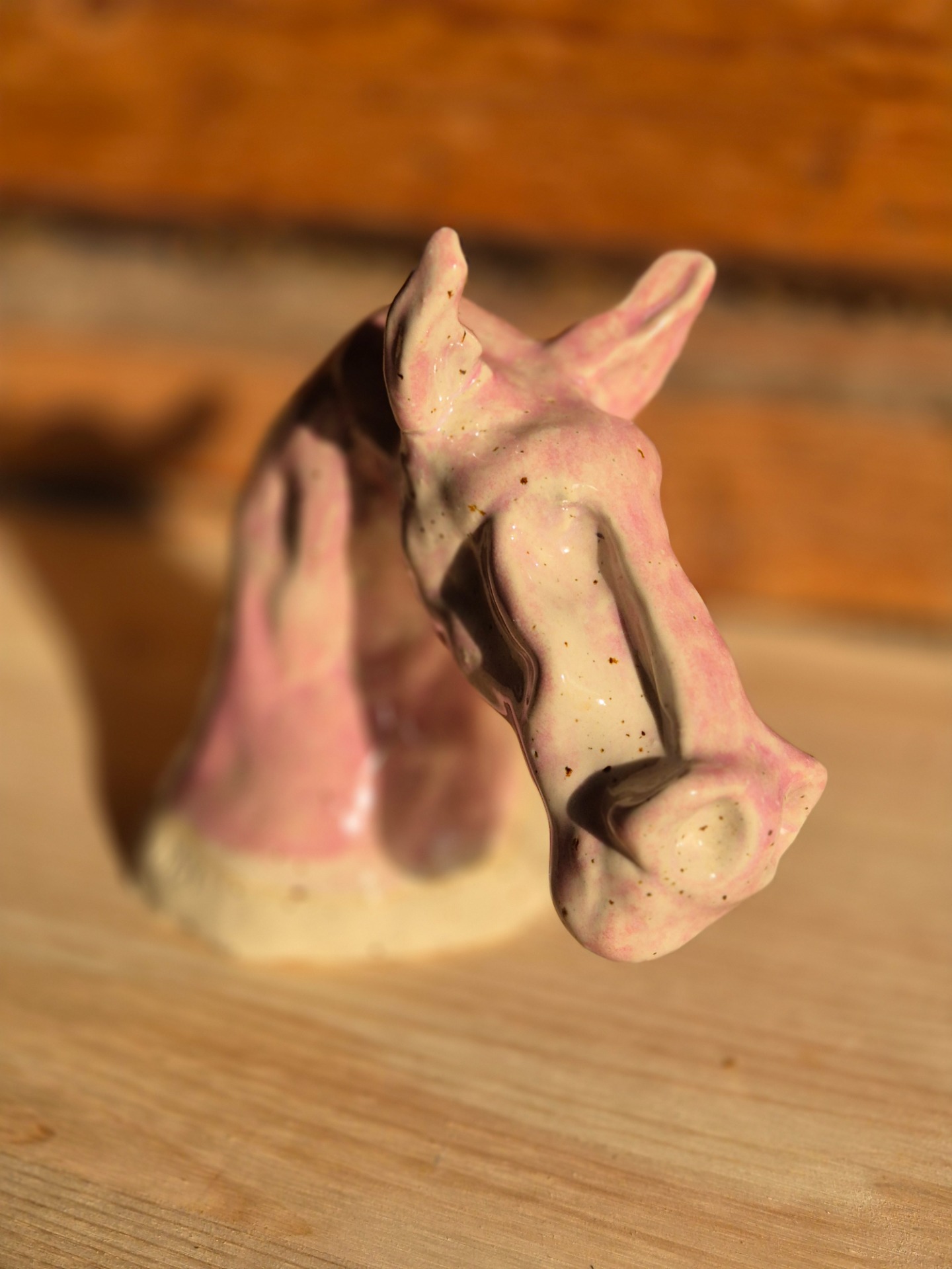 Hästhuvud i keramik.