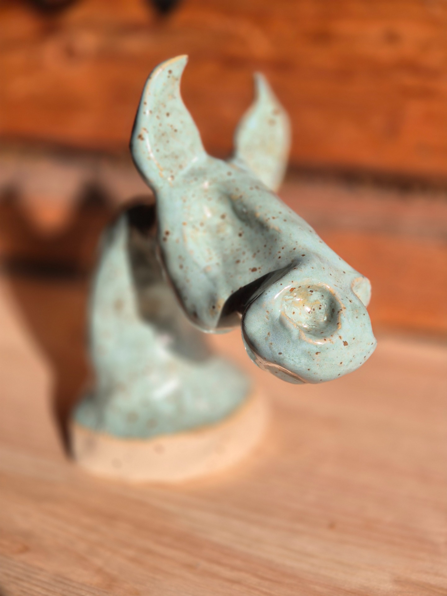 Ett hästhuvud med en skåra i nacken där du kan sätta/limma fast tagel från en egen häst!