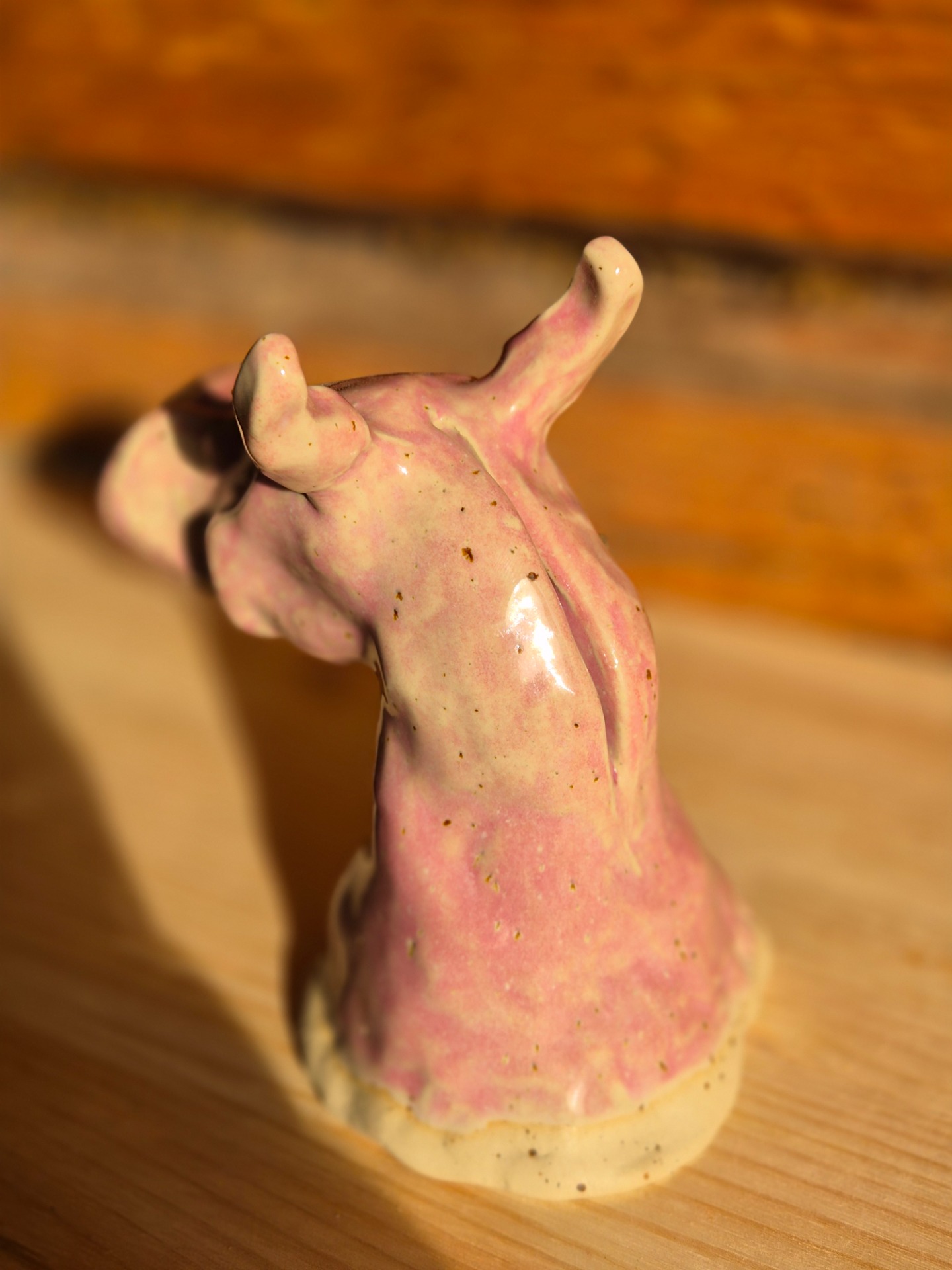 Minneshäst i keramik med en skåra i nacken där du kan sätta/limma fast tagel från din egen häst!