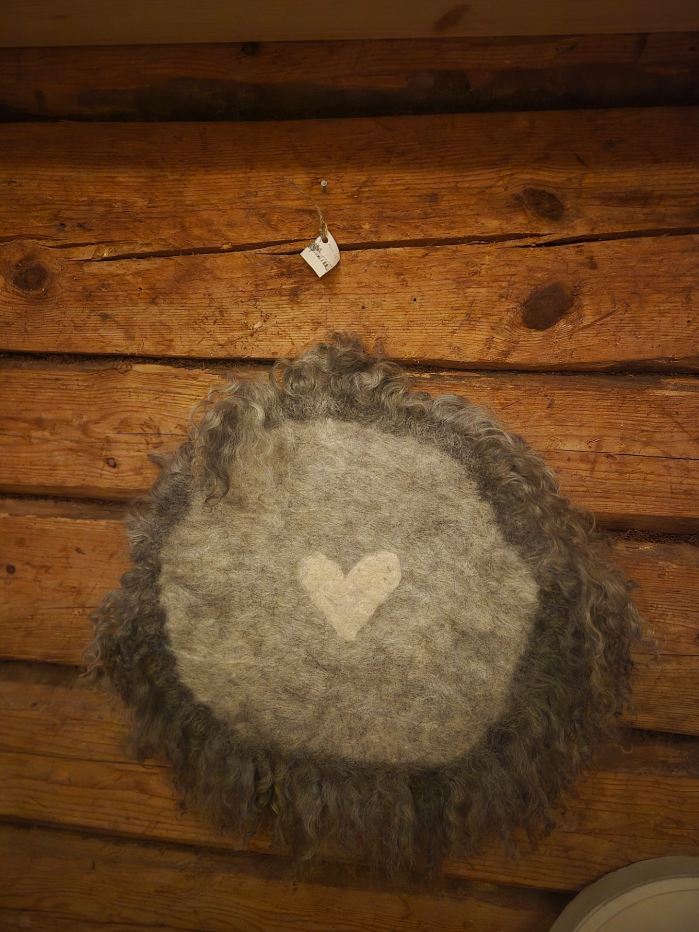 Våt tovade sittunderlag men en nåltovad kant och ett nål tovat hjärta.